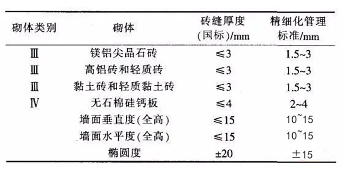 (8)磷酸鹽泥漿砌筑砌體磚縫厚度符合表2中精細化管理標準要求,泥漿飽滿度不得低于90%。