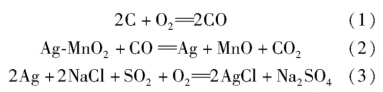 由精礦配料工序送來的混合料通過料斗送入回轉窯內氯化焙燒,混合料在回轉窯內還原性氣氛中的停留時間為30~60min,焙燒溫度為780±50℃,其發生的主要反應如下: